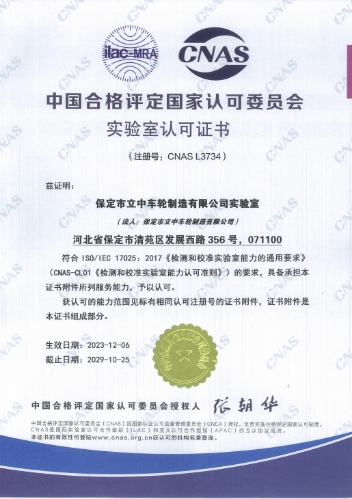 Lizhong Rad hat die Zertifizierung nach ISO 14001 (Umweltmanagementsystem), IATF 16949 (Qualitätsmanagementsystem für die Automobilindustrie), ISO 27001 (Managementsystem für Informationssicherheit), ISO 45001 (Managementsystem für Gesundheit und Sicherheit am Arbeitsplatz), ISO 50001 (Energiemanagementsystem), US General TIP Laboratory Certification, Japan VIA Laboratory Certification, KBA ( Deutschland), DOT (USA), INMETRO (Brasilien), EAC (Zollunion), SNI (Brasilien), BMSI (Taiwan, China), ARAI (Indien) Produktexportzertifizierung. Akkreditiert und auditiert durch Mercedes-Benz VDA, Audi POT, BMW VDA, VW Formel/Toyota NSER, Honda ASSCE, Nissan ASSES, Ford Q1, GM und Volvo MSA Automobilwerke.